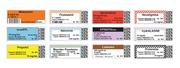 El sistema de etiquetado seguro ayuda a cumplir con las pautas ISMP, incluida la eliminación del uso de etiquetas escritas a mano en las áreas perioperatorias/de procedimiento e incluyendo un código legible por máquina (por ejemplo, código de barras, RFID) en todas las etiquetas de jeringas e infusiones para 2025.