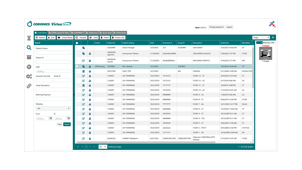 Ofreciendo integración perfecta con HIS, RIS y PACS, esta solución versátil también admite archivo y recuperación a largo plazo, asegurando la confidencialidad mediante encriptación y verificación de datos. Virtua Smart HP/LP es la elección ideal para instalaciones que buscan optimizar sus procesos de imagen mientras mantienen los más altos estándares de seguridad y eficiencia. El desempeño es de 100 discos por día, incluso los estudios pueden ser grabados en memorias USB.